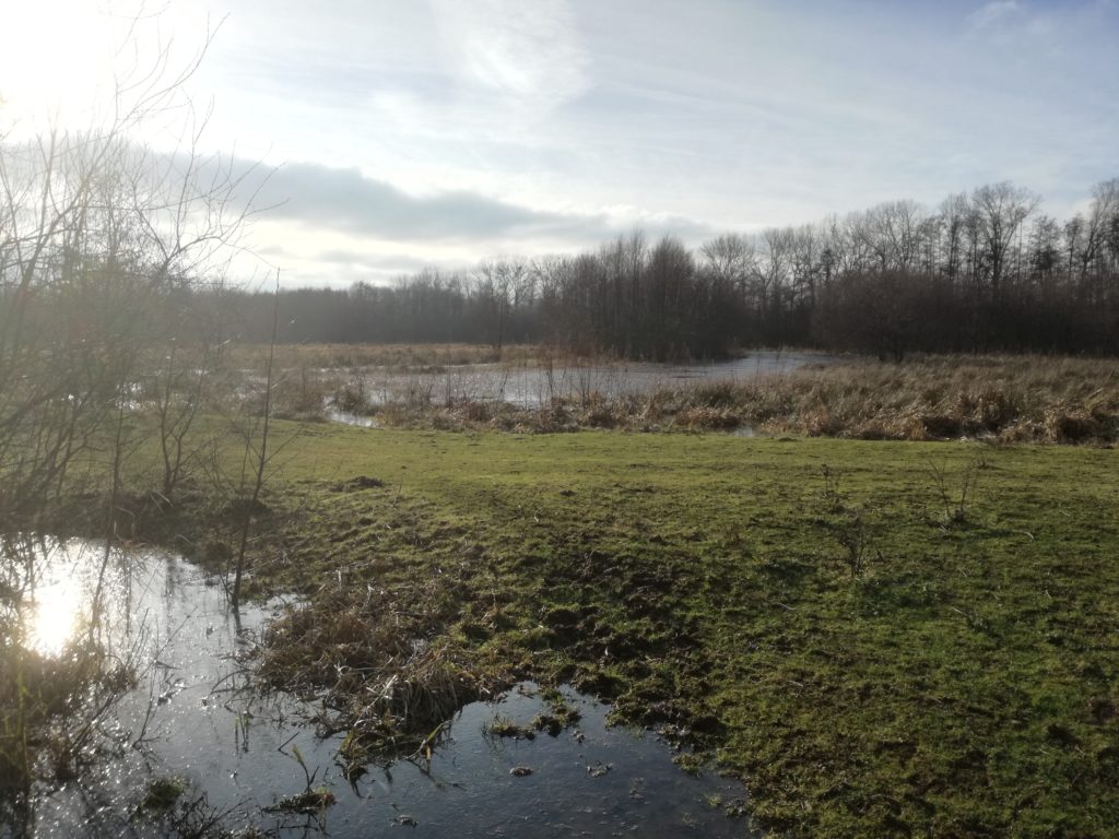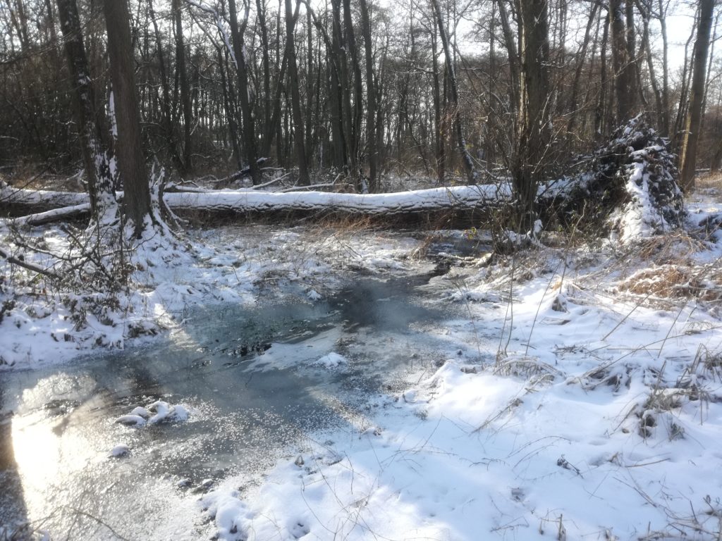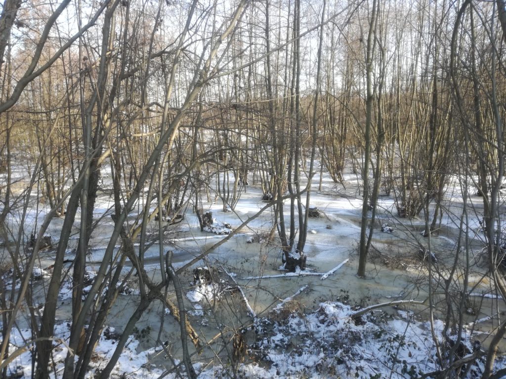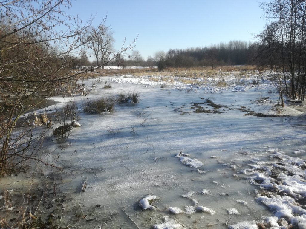 Voor ik “ut Brook” inloop is er van het beverspoor weinig te zien. Wel is het oostelijke deel voorzien van een ijsvlakte, aangezien hier een paar weken geleden alles bank stond.